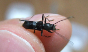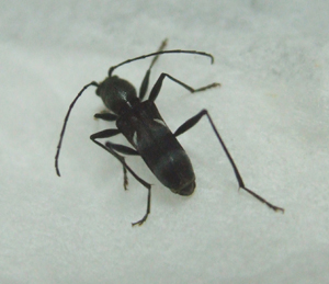 このヨコヤマトラカミキリ自体珍しいカミキリですが、その黒化型となるとさらにめずらしいものでしょう。今のところ黒化型は伊豆半島でのみ得られているようです。
