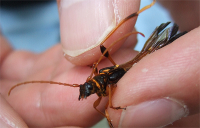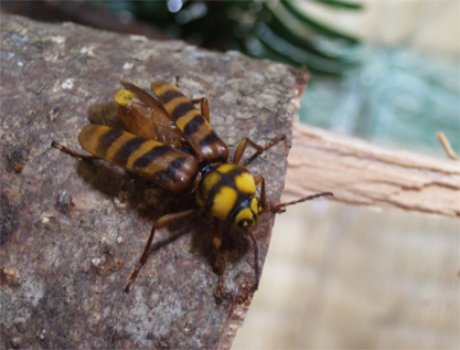 オオトラカミキリ。2007年の採集品です。ハチに擬態するカミキリは多いのですが、これはそのなかでも有名なものです。
