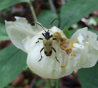 この花だけを食べる贅沢なカミキリムシがいます。フタスジカタビロハナカミキリです。