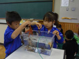 北茨城市立精華小学校で行われた「こころの復興支援プロジェクト」に、和田茂樹助教、技術専門職員 土屋泰孝さん・品川秀夫さんが参加し、菅平センターとの合同で生物展示を行いました。子供たちは海や山の生き物に触れたり、顕微鏡で観察を行いました。