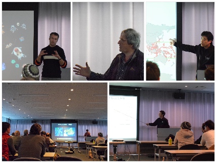 サミュエル・オードラン氏(タラ号船長)、クリスチャン・サルデ氏(パリ大学教授)、中村洋平氏(高知大学准教授)、谷口俊介氏(筑波大学下田臨海実験センター 准教授)、和田茂樹氏(筑波大学下田臨海実験センター 助教)によるセミナーが行われました。